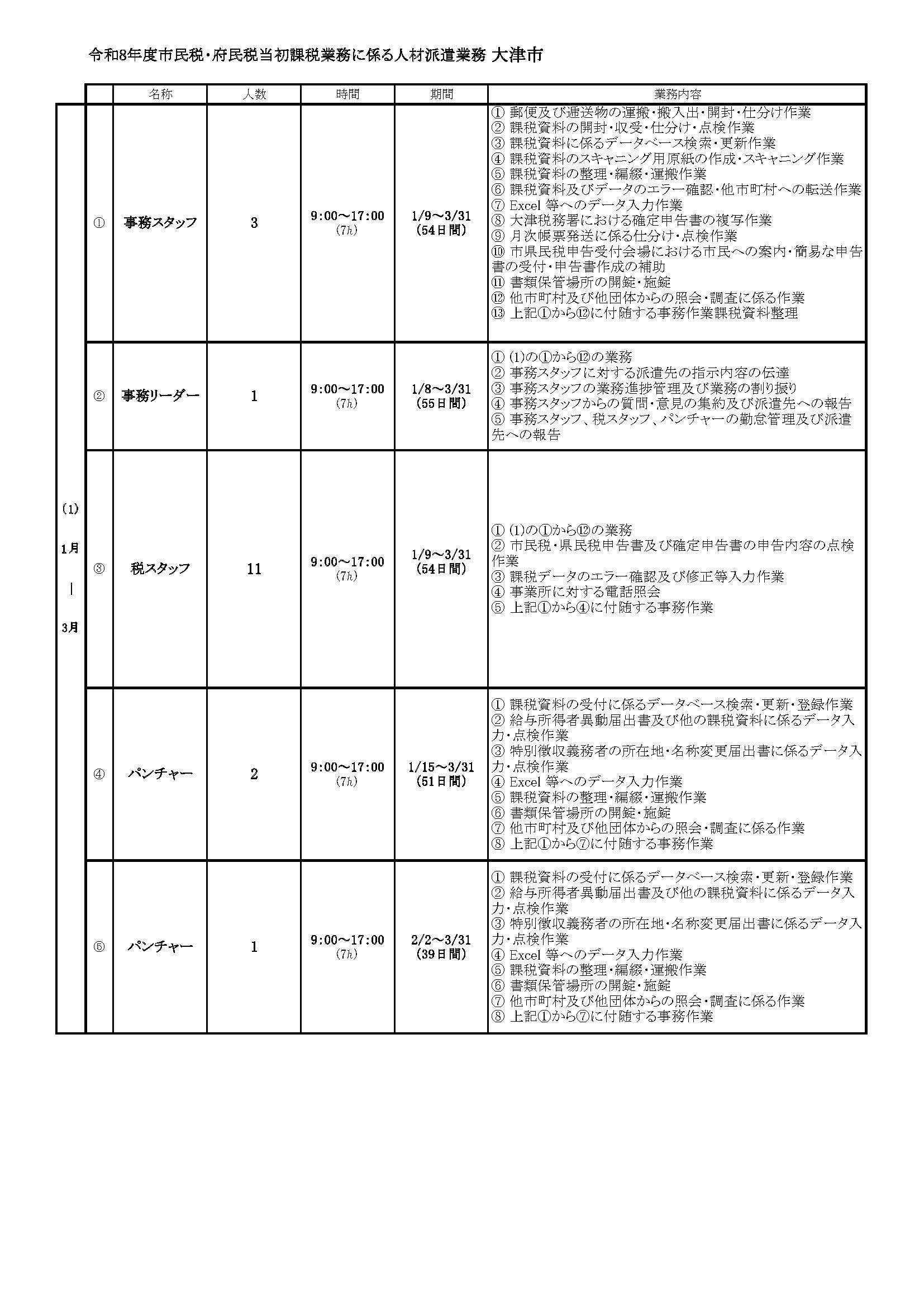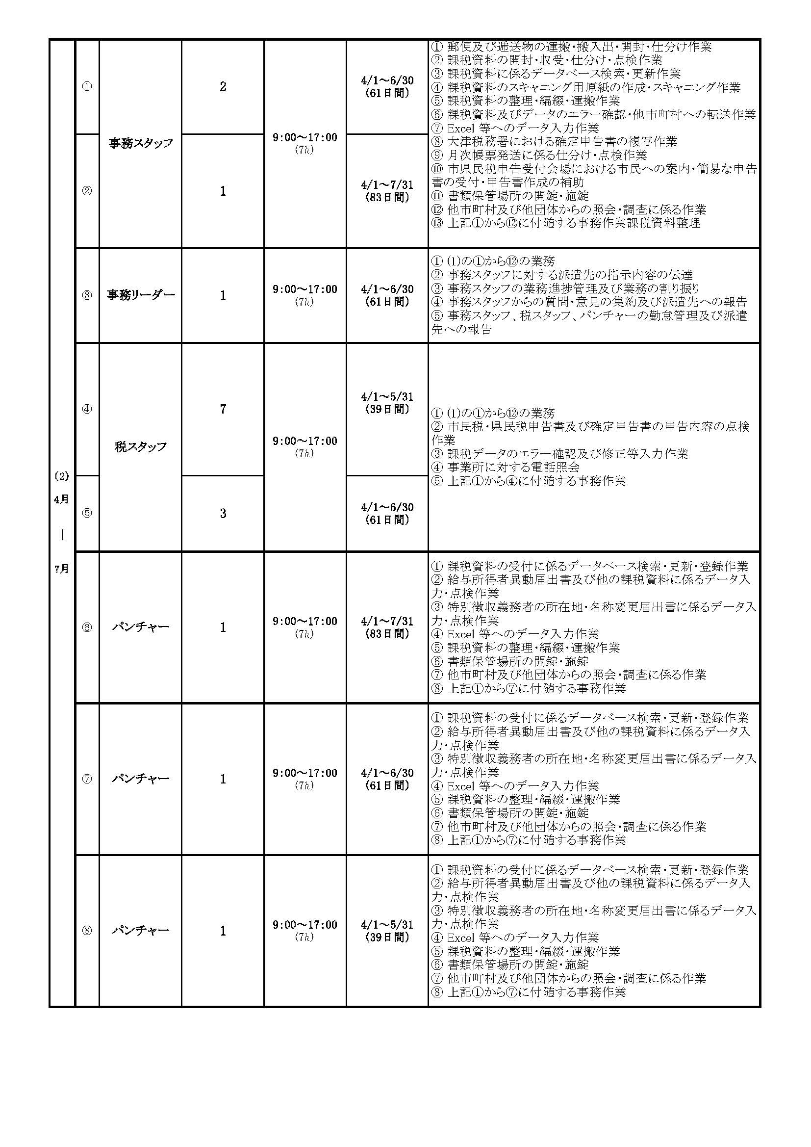(1)1~3月・(2)4~7月 続きで勤務できる方。